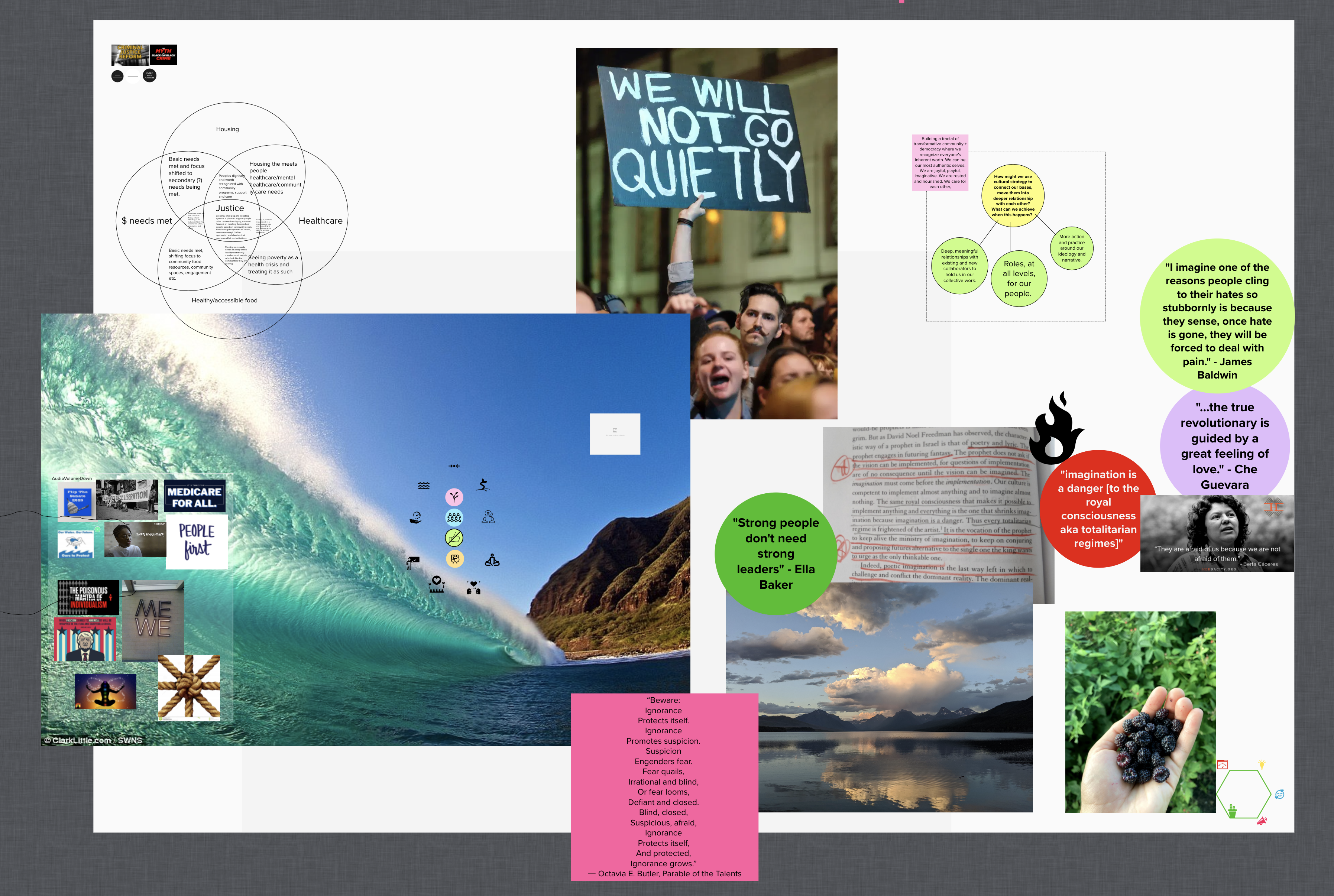 - Naming vulnerability as an act of courage and explicitly inviting it, creates space for people to do it. The one person who shared they didn’t feel connected helped surface how they were challenged in other parts of their work. How can they be hungry for organizing if they’re not connected w/ the team? I feel emboldened to call people in to sharing when there’s no engagement.